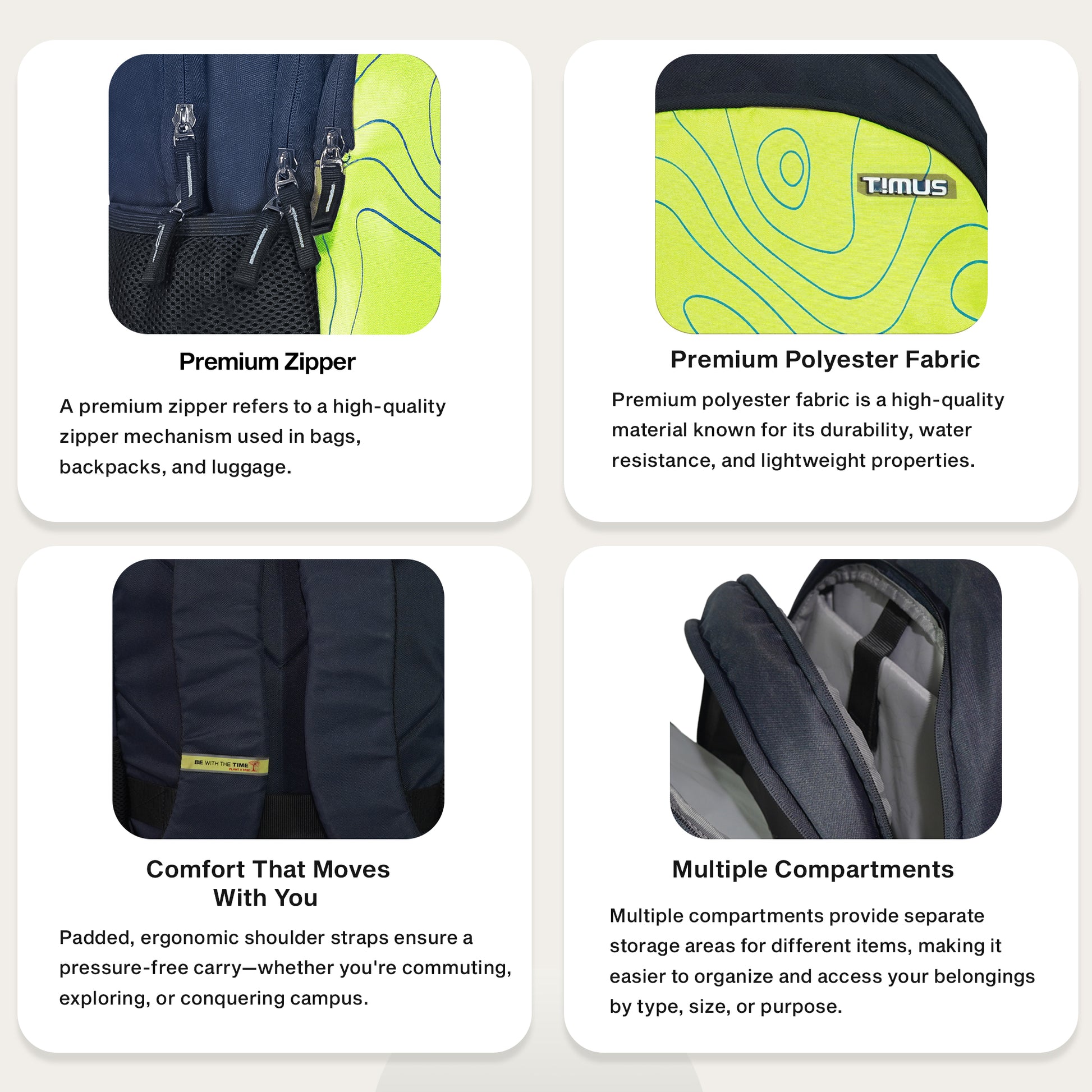 Available in bold and refreshing colors like Mustard Yellow, Dark Falsa, Green, and Beige, the Chile backpack is as stylish as it is practical.